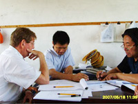 | 公司領導與客戶商討技術問題 | 公司領導與國外客人進行技術交流 | 車間一隅 |