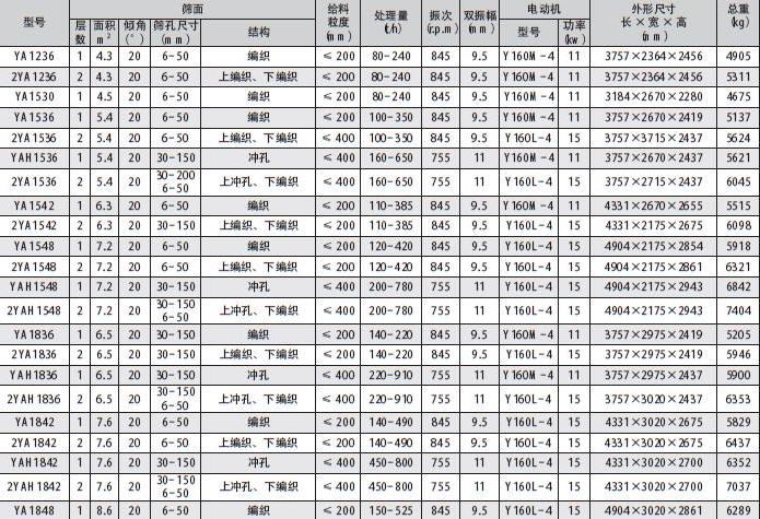 1. 篩機分單層和雙層,并有輕型和重型之分。